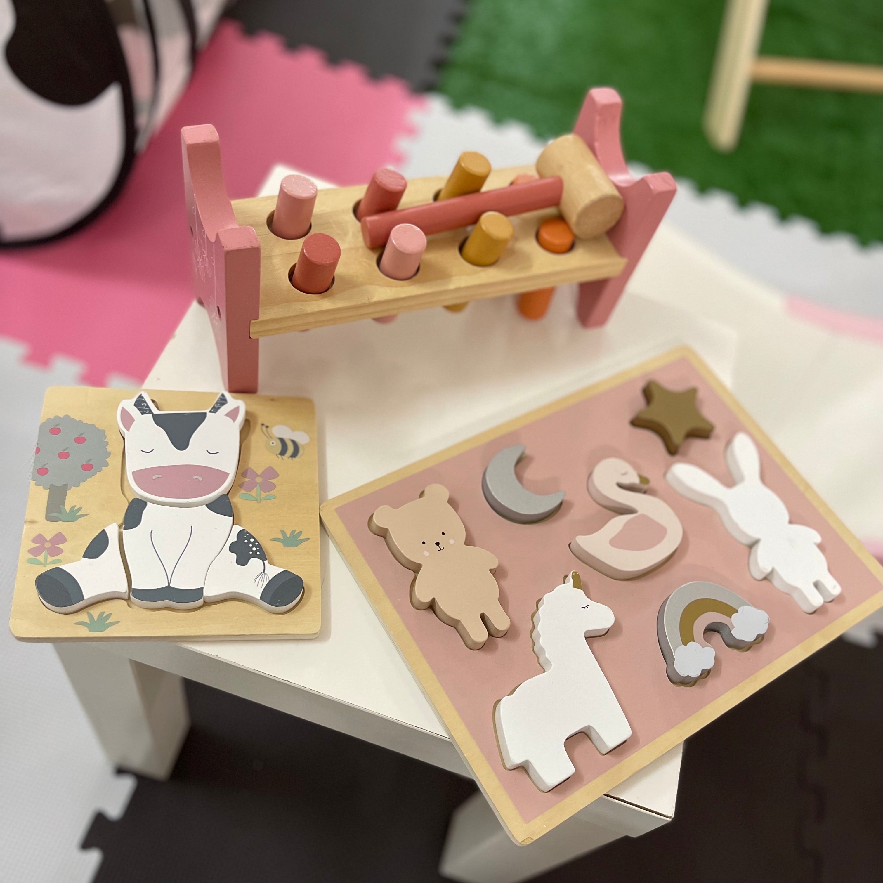 En cada uno de nuestros montajes ofrecemos una diversidad de juguetes que llevan un propósito educativo. Cada uno invita a los niños a desarrollar distintas destrezas y explorar.